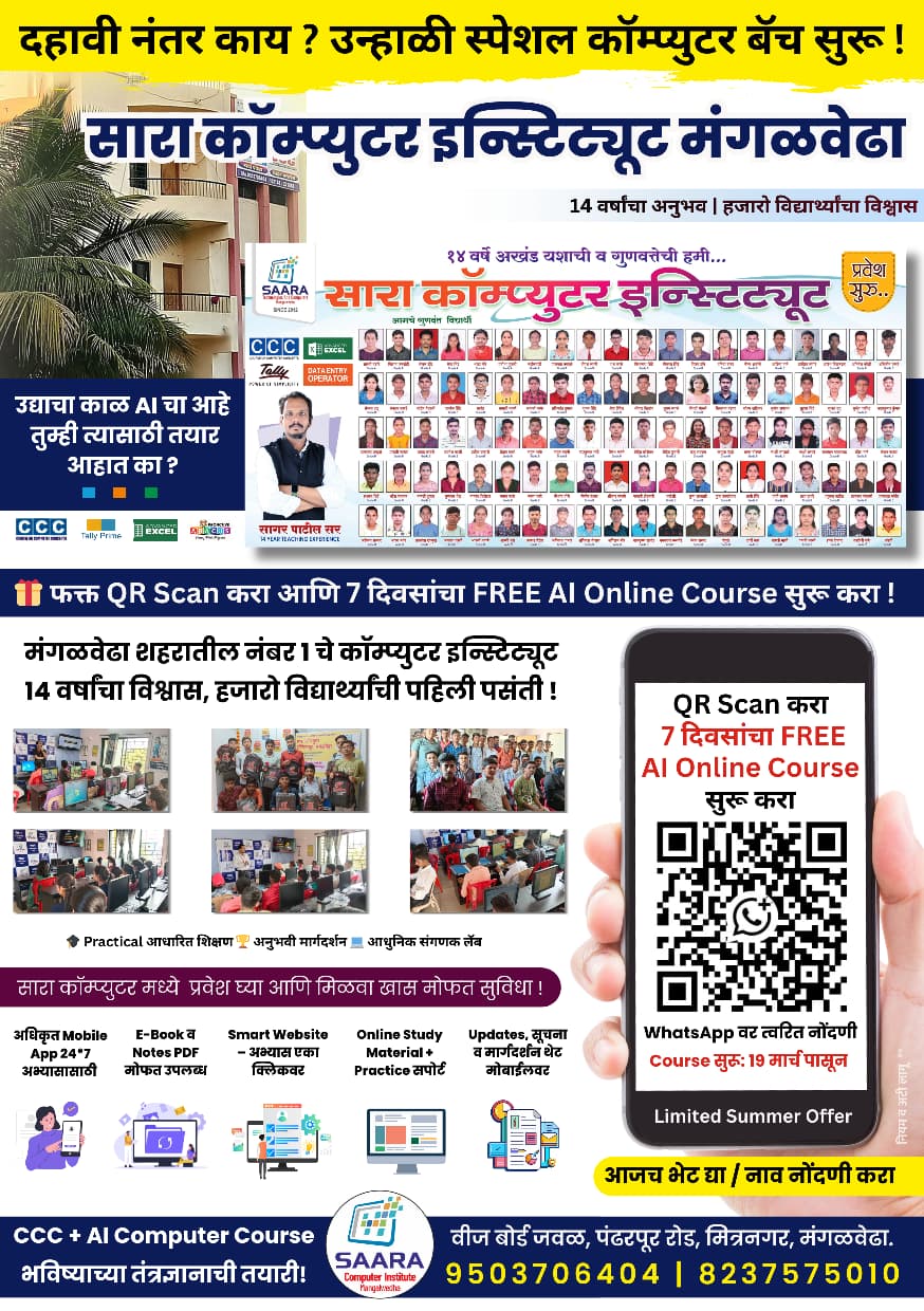 मराठी बातम्या, ब्रेकिंग न्यूज मराठीत सर्वात आधी Mangalwedha Times वर. आजच्या ताज्या बातम्या, लाइव्ह न्यूज अपडेट, सर्वात आधी वाचा विश्वासार्ह मराठी न्यूज वेबसाइट मंगळवेढा टाईम्स.