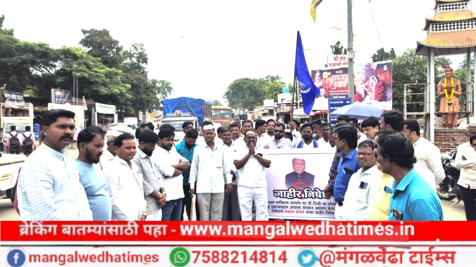 मंगळवेढ्यात बहुजनांचा संताप उसळला, भरचौकात माजी मंत्री लक्ष्मण ढोबळे यांचा केला निषेध; शासनाने ढोबळे यांच्यावर कठोर कारवाई करावी, अन्यथा तीव्र आंदोलन छेडणार दिला इशारा