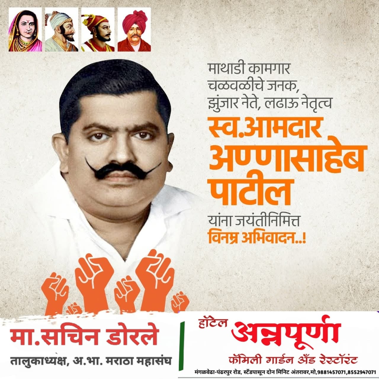 अखिल भारतीय महासंघ, मराठा मंगळवेढाच्यावतीने अखिल भारतीय मराठा महासंघाचे संस्थापक अध्यक्ष, मराठा आरक्षणाचे जनक व थोर मराठा आमदार कै. आण्णासाहेब पाटील यांच्या ९२ व्या जयंतीनिमित्त