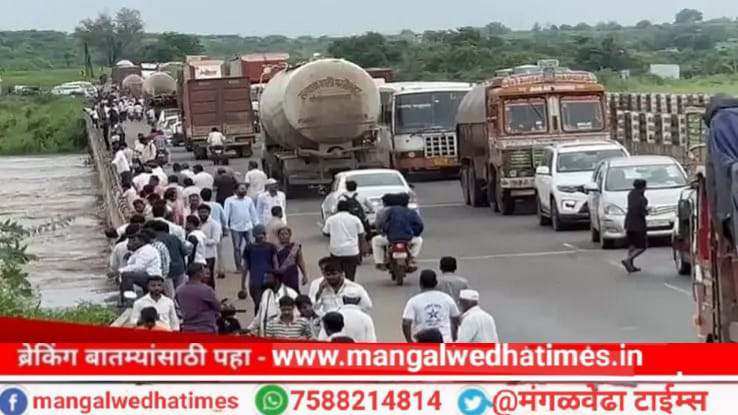 थोडयाफार पाणी ओसरत असल्यामुळे सोलापूर मंगळवेढा महामार्ग सुरू करण्यात आला आहे.