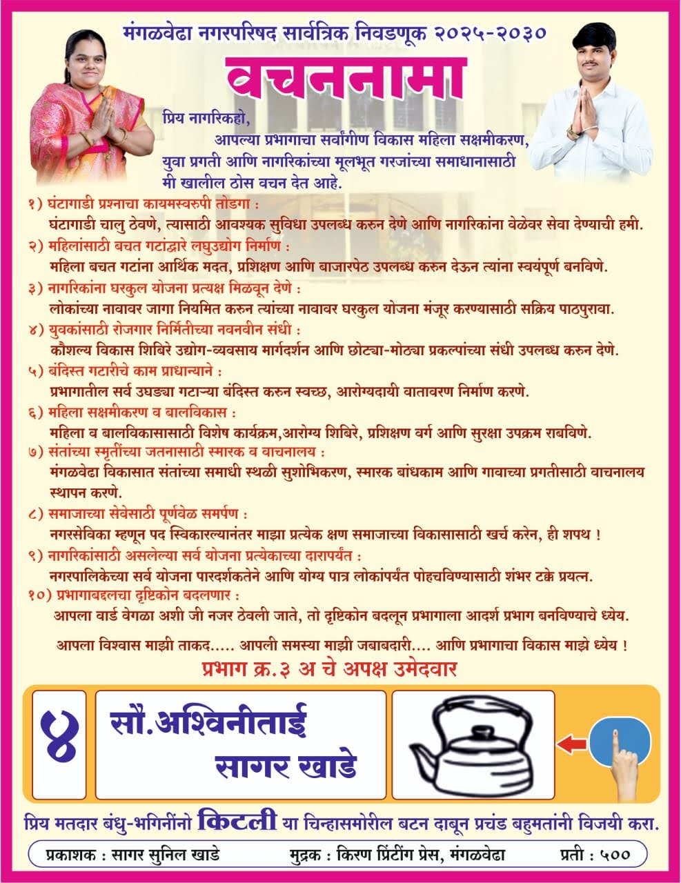 तत्पूर्वी मतदानात मतदारराजा आपला कौल, आपली पसंती कोणाला देणार यावर आता मोठमोठ्या पैजा लागत असल्याचे चित्र दिसत आहे. ‘कोण कोणाला ठरणार भारी अन् कोण होणार मंगळवेढा शहराची कारभारीन’ है। पाहण्यासाठी आता सर्वांचे लागून राहिले आहे.